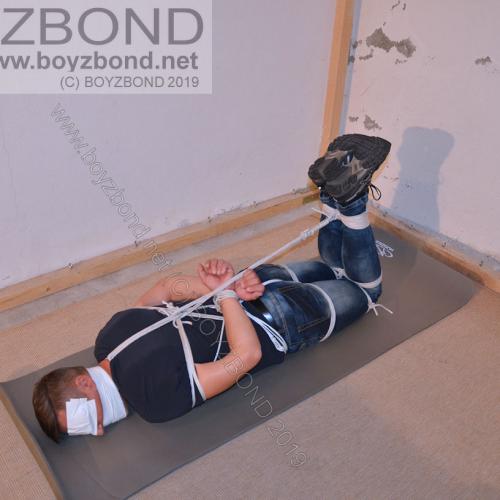 GUY IN TIGHT JEANS BOUND & HOGTIED