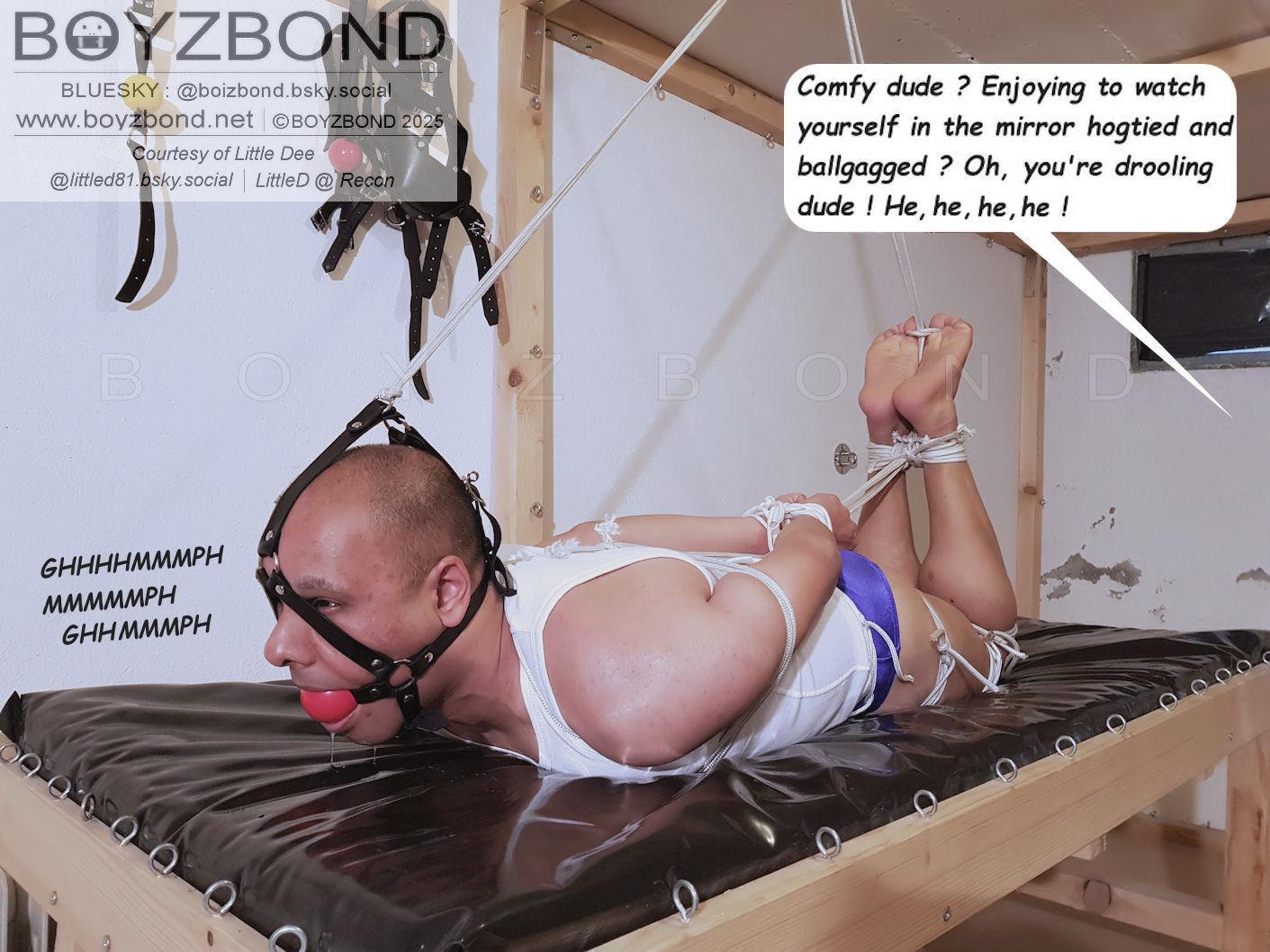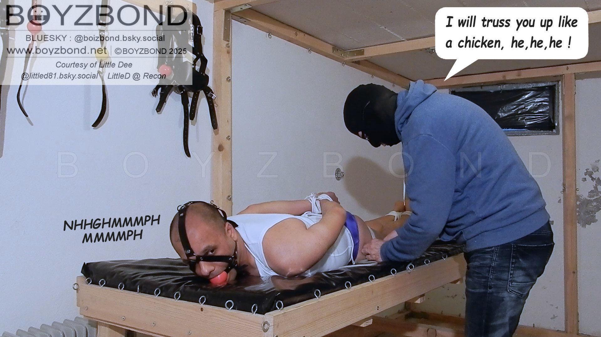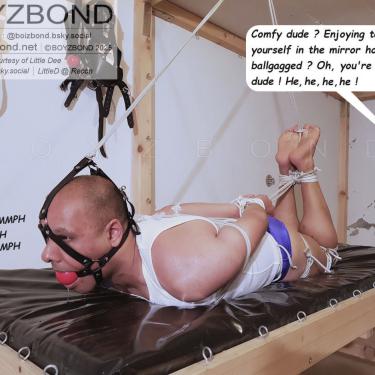 Little Dee bound and gagged in speedos and strictly hogtied again !