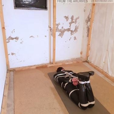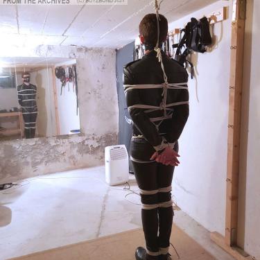 Tiré des archives : un mec en cuir serré mérite du bondage serré et sévère, ha,ha !