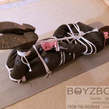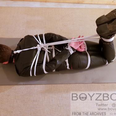 DUDE BOUND AND TAPEGAGGED IN TIGHT LEATHER