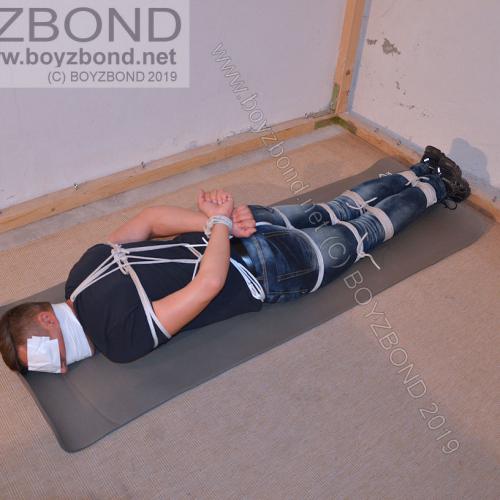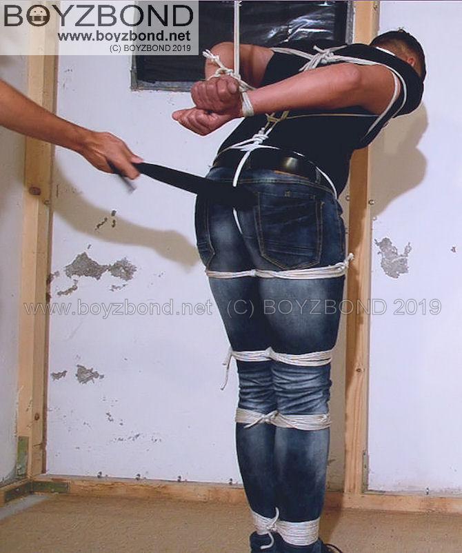 GUY IN TIGHT JEANS BOUND & HOGTIED
