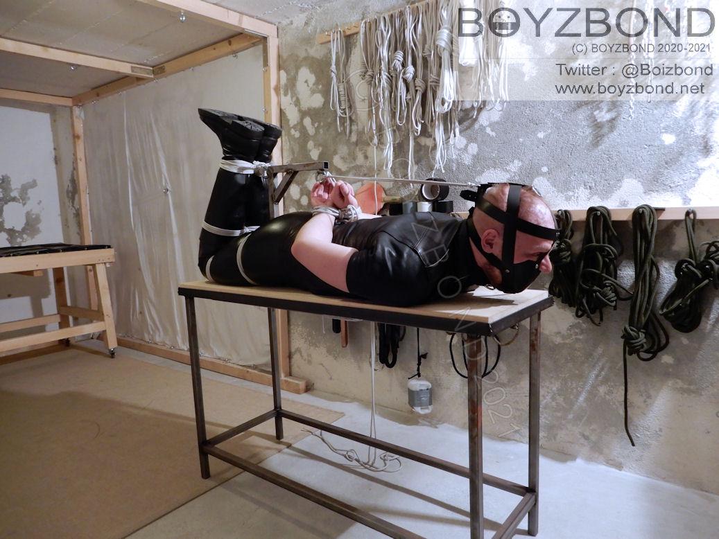 STRICTLY HOGTIED IN TIGHT LEATHER ON THE HOGTIE TABLE