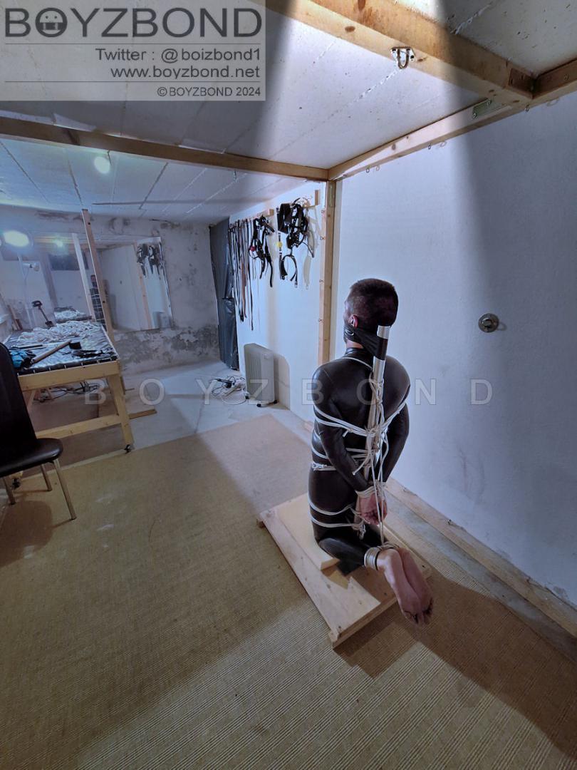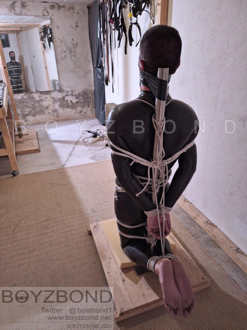 RUBBER BONDAGEBOI IN HOGTIE TRAINING