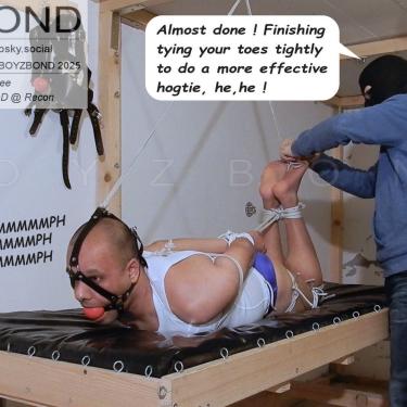 Little Dee bound and gagged in speedos and strictly hogtied again !