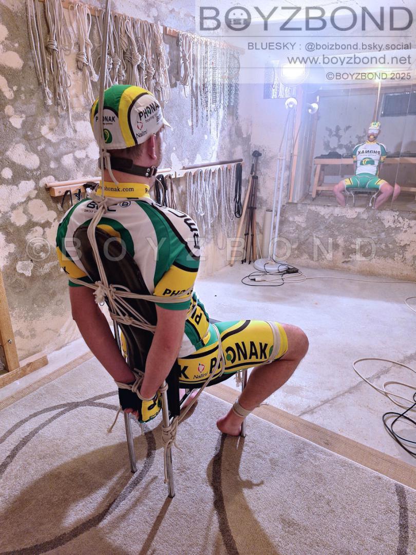Jeune mec ligoté en tenue cycliste