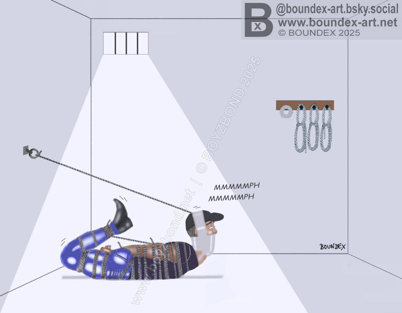 Corpusligatum in bondage predicament after talking about a Boundex bondage drawing : Shhh ! Gagged the same way and let's try it, he,he !