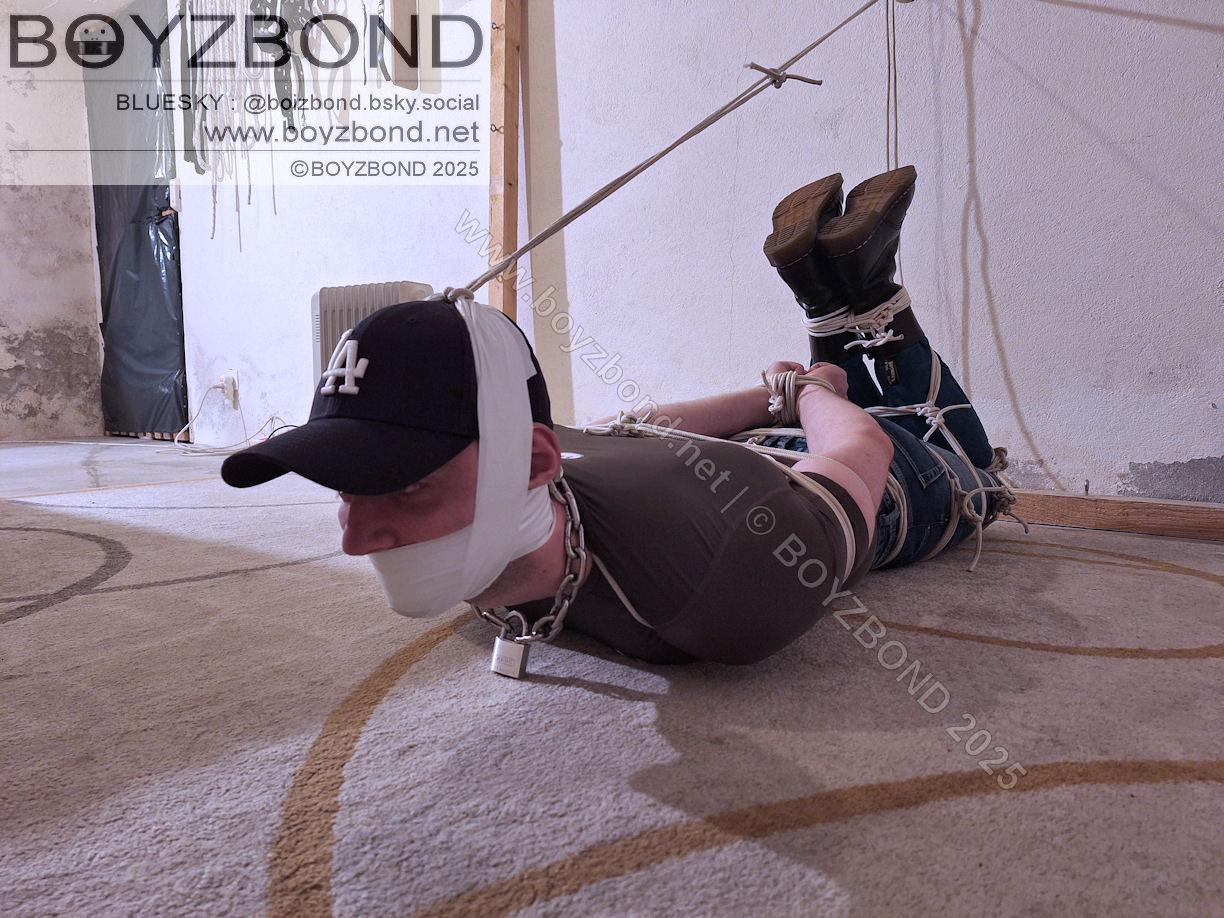 Bâillonné sévèrement au scotch et hogtie façon "Boundex"
