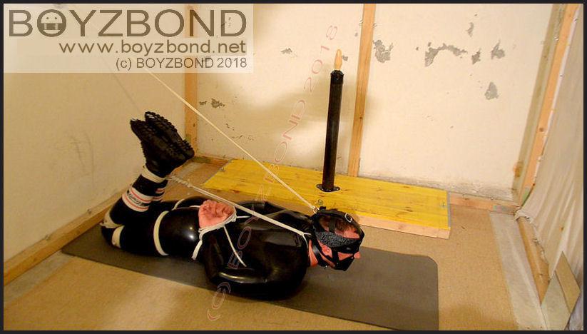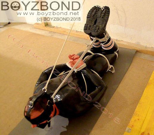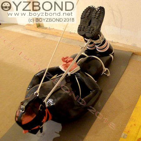 DUDE IN TIGHT RUBBER BOUND AND GAGGED THEN STRICTLY HOGTIED