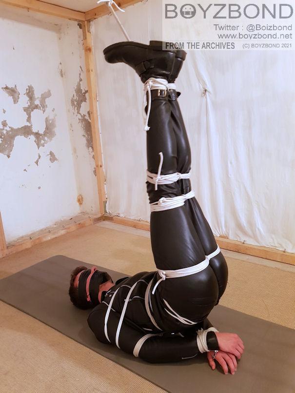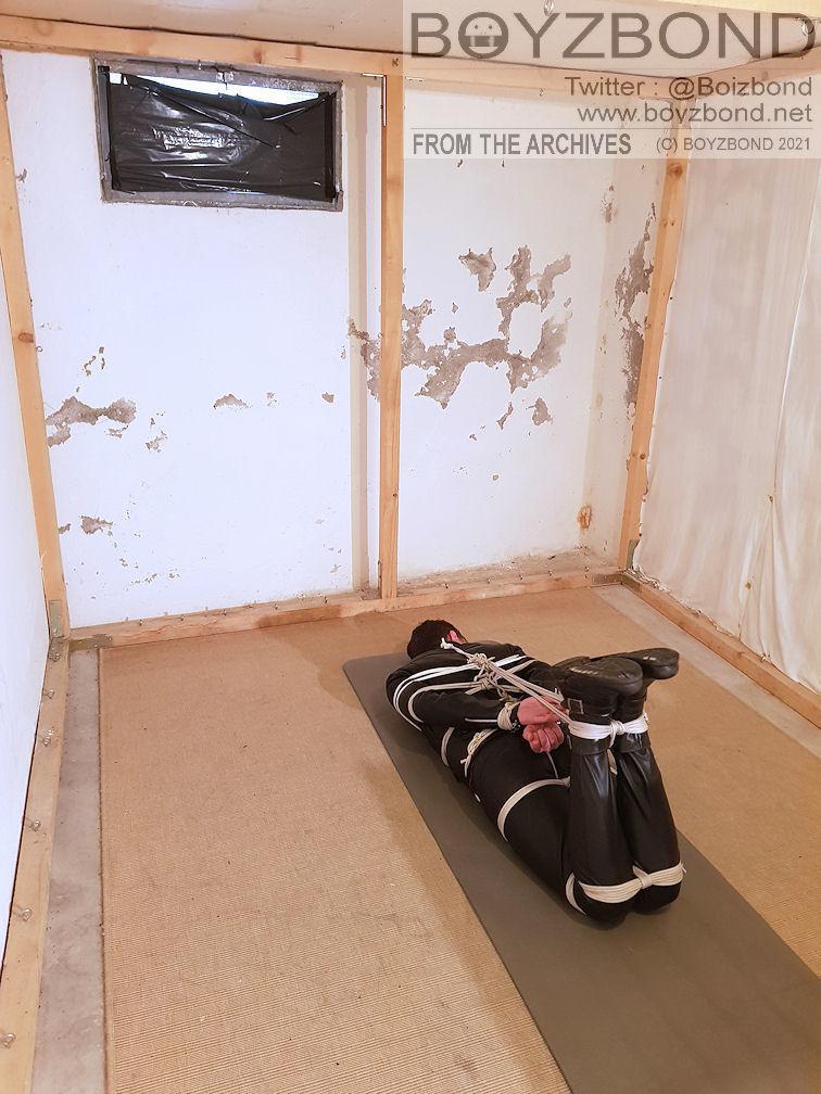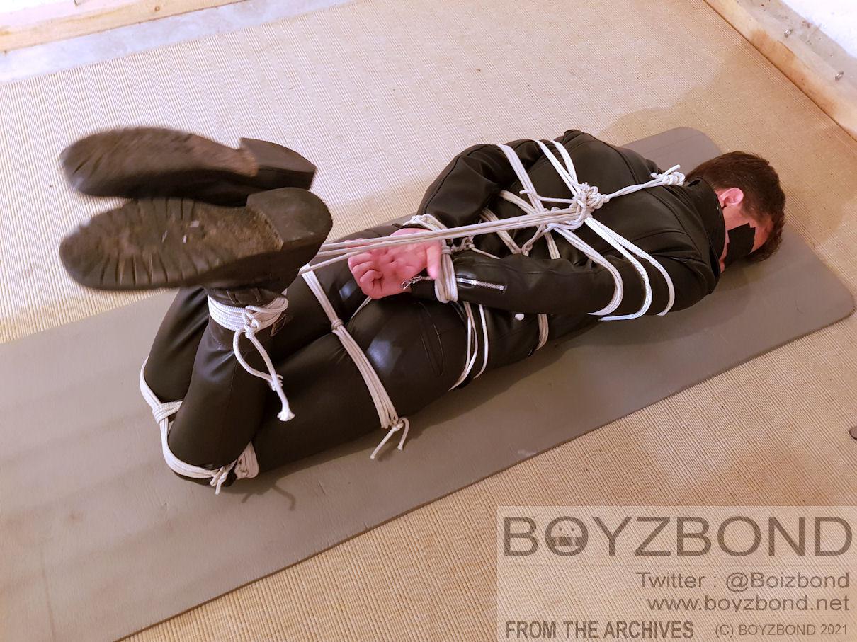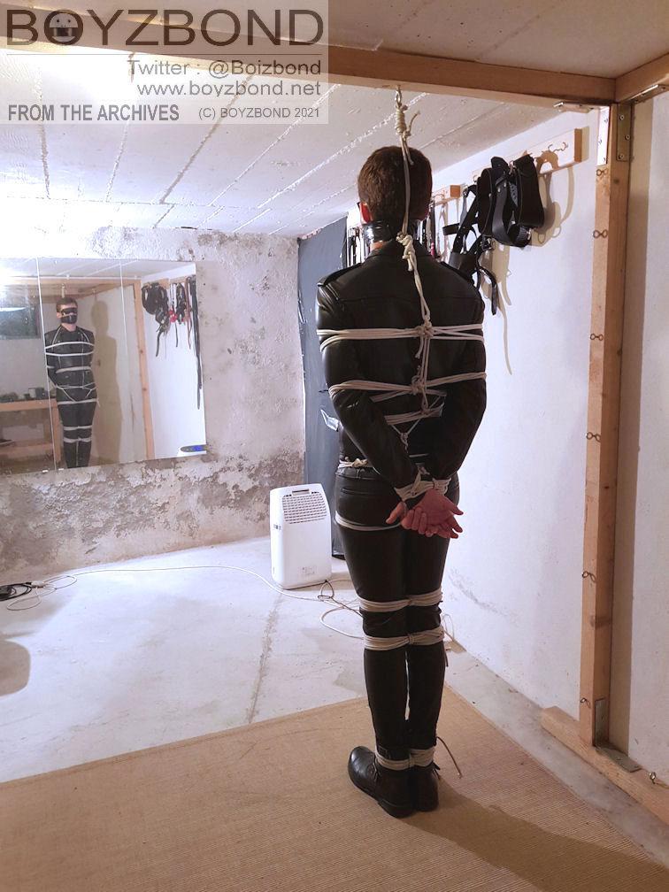 Tiré des archives : un mec en cuir serré mérite du bondage serré et sévère, ha,ha !