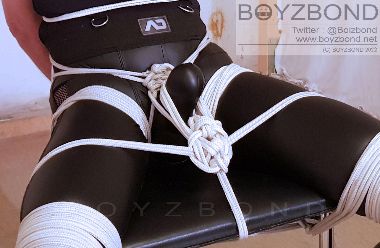 Jeune mec ligoté, bâillonné, muselé, paquet attaché, "vibré" sur une chaise,