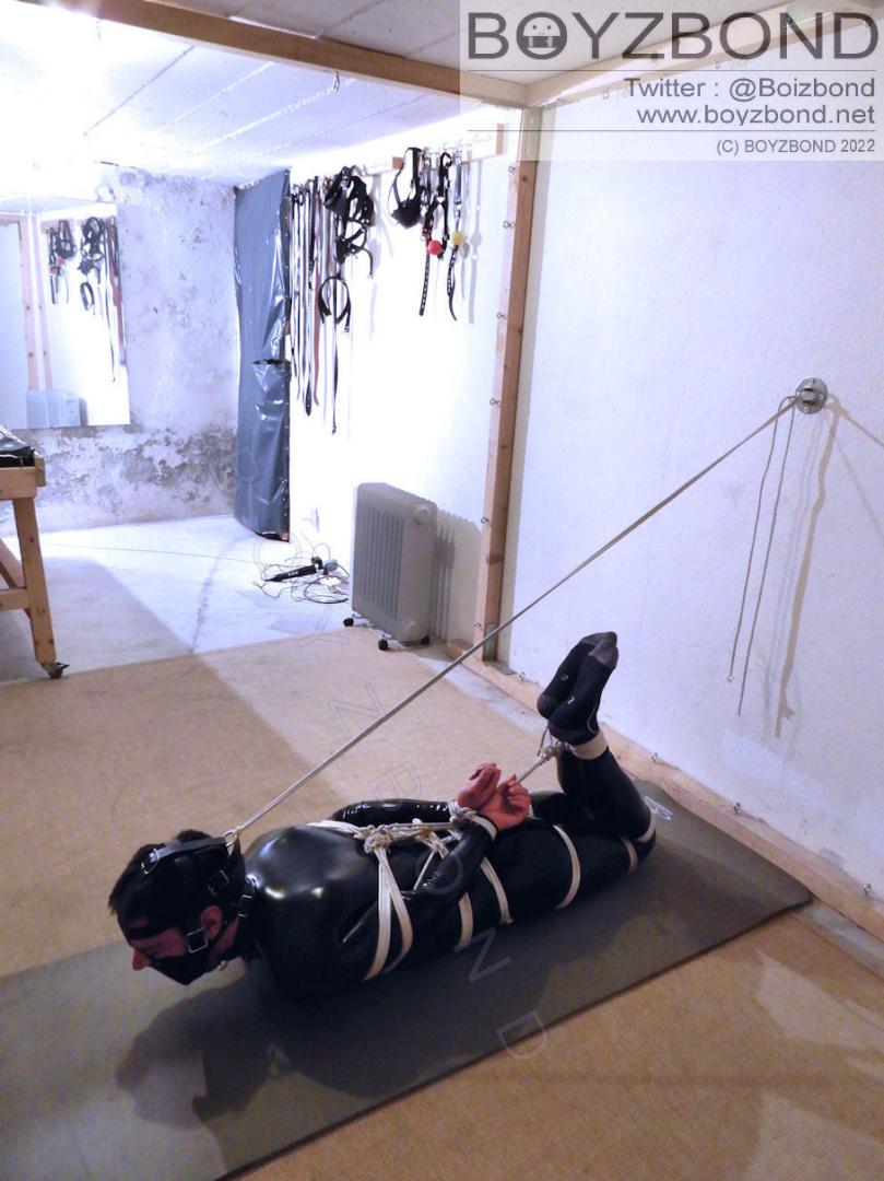 RUBBER BONDAGEBOI IN HOGTIE TRAINING