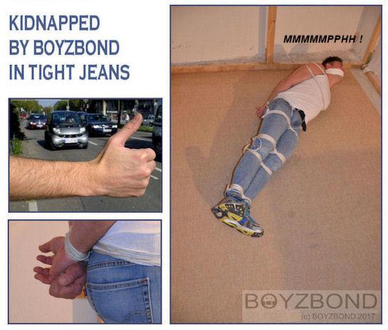 A gagging session for the "poor" dude in tight jeans in the Boyzbond?s lair !